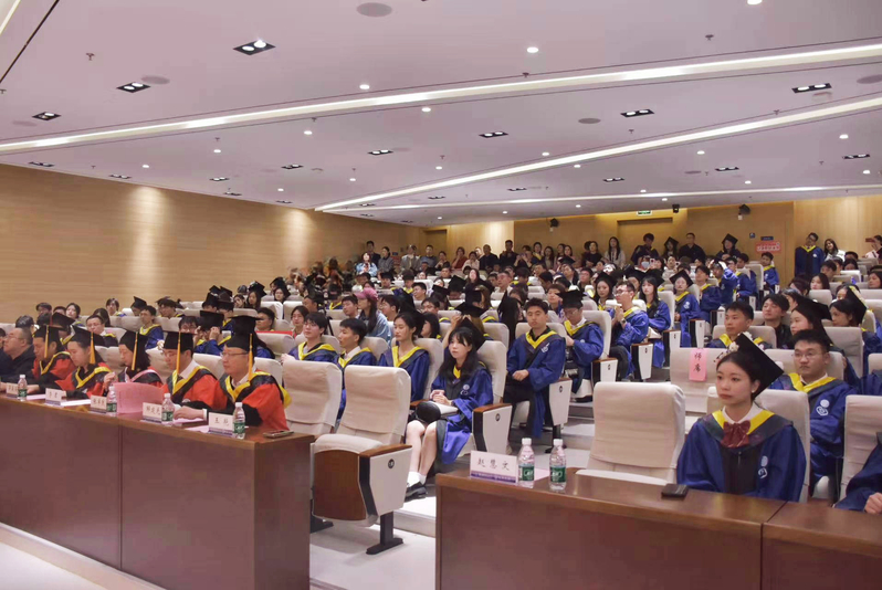 在学位授予环节,学院领导、学院学位评定委员会成员、导师代表为全体毕业生拨苏正冠,颁授学位证书。
