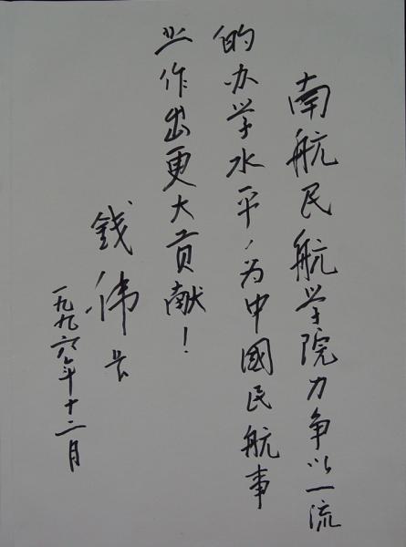 长钱伟长为成人抖音 题词:“南航成人抖音 力争以一流
